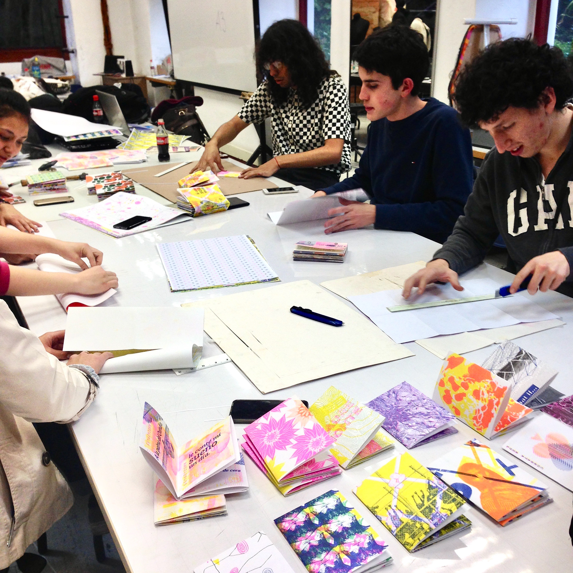The Design Challenge "POLITICAL PATTERN" concluded with the development of printed booklets, which were collected and grouped into a kind of book of more than 88 pages. That made with RISO - a printing technology that influences and It manipulates the visual aesthetics of the images and bears a lot of similarity to screen printing. Inaccuracies, halftone dots, spot color blends, and overlays are some of the possible phenomena with this printing process. The compiled book as well as the sheets and the loose booklets were part of an exhibition, which took place in the Luis Caballero Room of the Department of Architecture for the entire Uniandina community for a week. In total 11 projects were exposed in their different physical representations. The entire process and results were published and disseminated on Designblogs of the Universidad de los Andes and on different social networks.